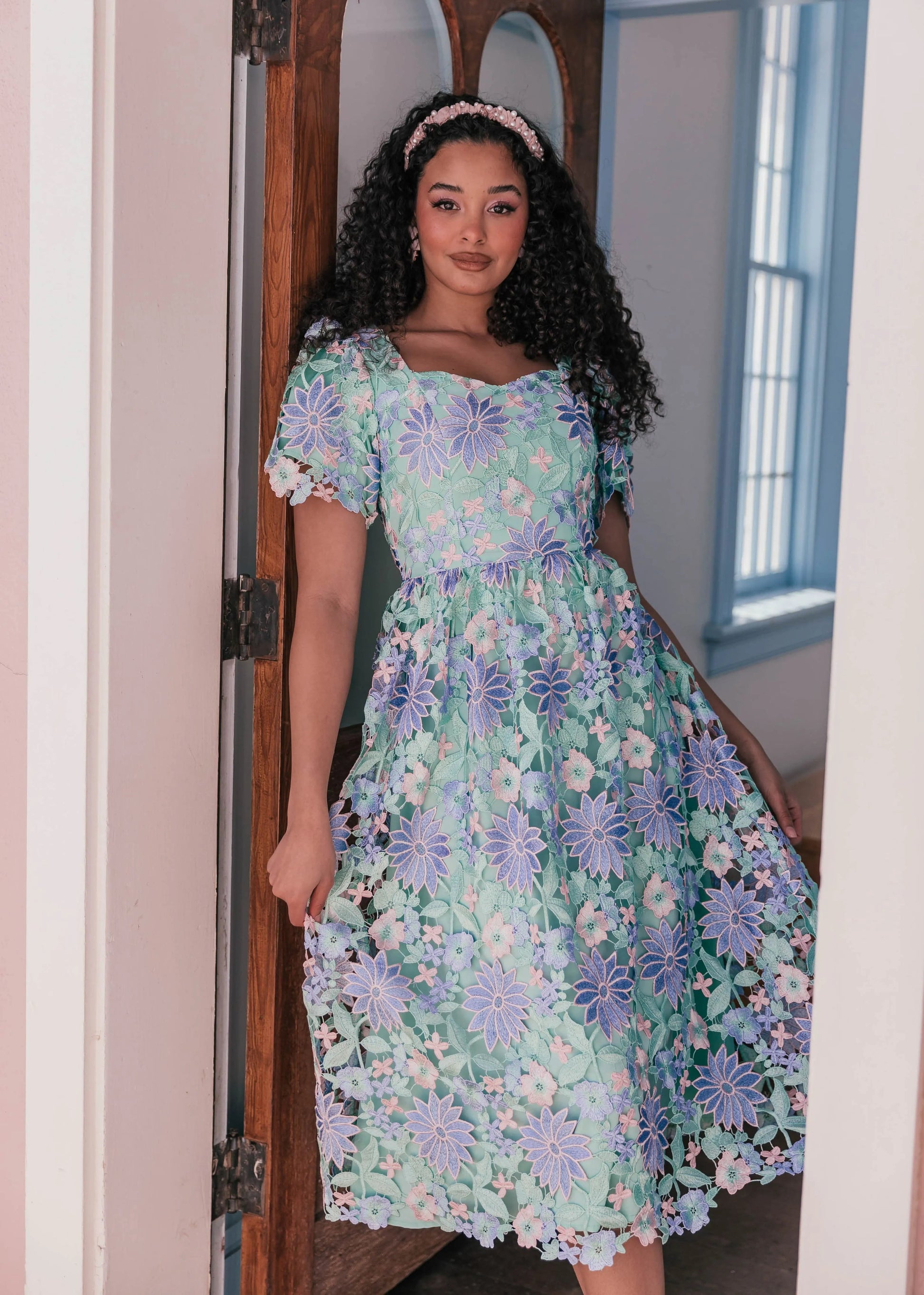 Practice your Waltz and prepare to dance the night away in the Flower Waltz Dress. Its dreamy floral lace and flattering sweetheart neckline are complemented by a twirl-worthy skirt. Ladies, trust us, this dress is going to be your new best friend.
