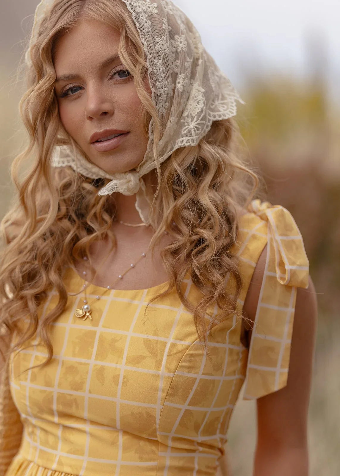 Bright, cheerful, and effortlessly feminine—the Sunari Dress is sunshine in dress form. Featuring a golden yellow grid print, tie straps, and a tiered hem, this midi is made for warm days and carefree moments. Whether you're heading to brunch or a beachside picnic, Sunari brings the joy.