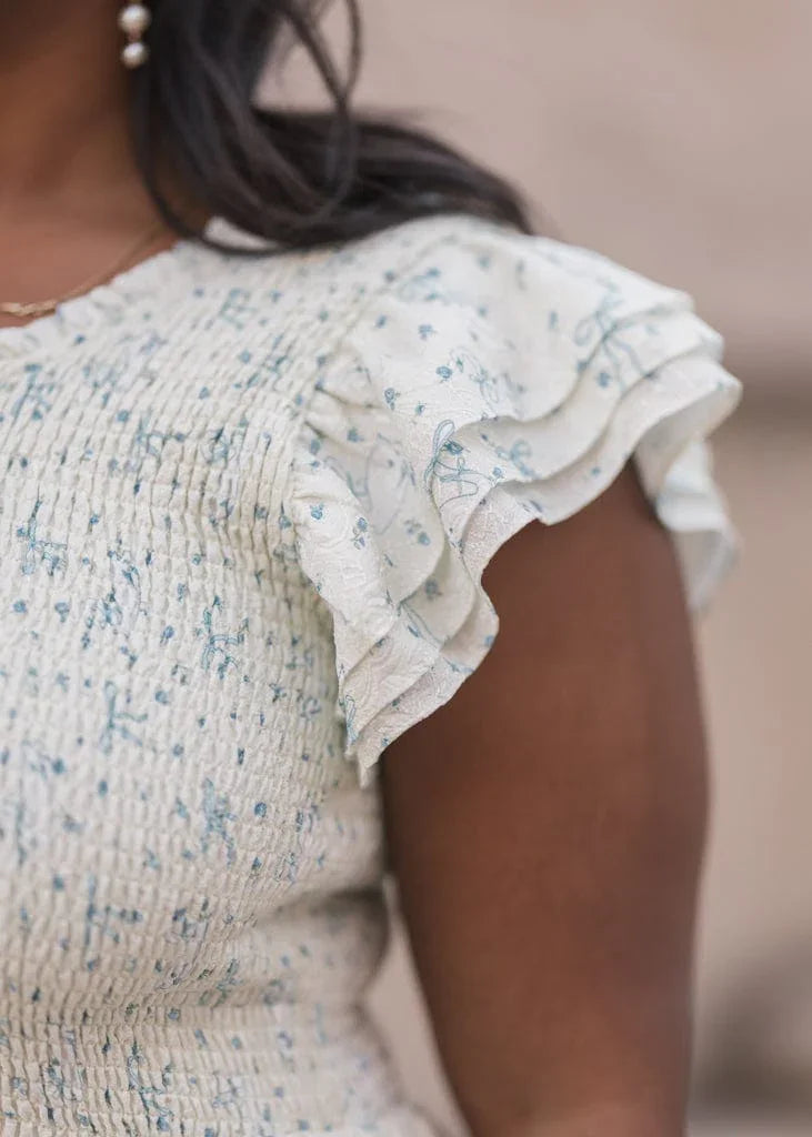 The Swan Serenade Dress is a charming and elegant piece, featuring a delicate blue swan print on a soft ivory background. Designed with a smocked bodice, flutter sleeves, and a ruffled hem, it offers a blend of comfort and graceful style. Perfect for sunny days, picnics, or special outings, this dress exudes timeless beauty and whimsical charm.
